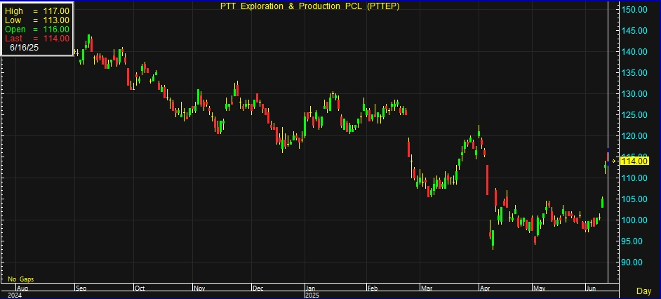 อัพเดต 16 มิ.ย. 2568 เวลา 03.48 น. • เผยแพร่ 16 มิ.ย. 2568 เวลา 03.48 น. • ข่าวหุ้นธุรกิจออนไลน์ผู้สื่อข่าวรายงานว่า วันนี้ (16 มิ.ย.68) ราคาหุ้น บริษัท ปตท.สำรวจและผลิตปิโตรเลียม จำกัด (มหาชน) หรือ PTTEP ณ เวลา 10:34 น. อยู่ที่ระดับ 114.00 บาท บวก 1.00 บาท หรือ 0.88% สูงสุดที่ระดับ 117.00 บาท ต่ำสุดที่ระดับ 113.00 บาท ด้วยมูลค่าการซื้อขาย 870.02 ล้านบาท