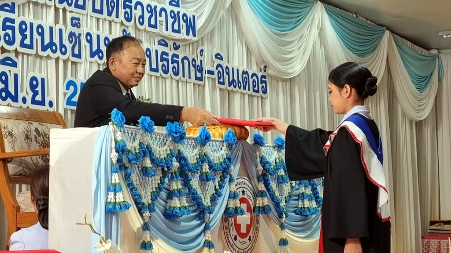 ที่หอประชุมศูนย์ OTOP Center จังหวัดอุบลราชธานี นายเกิดโชค เกษมวงศ์จิตร ผู้ตรวจราช การกระทรวงยุติธรรมเป็นประธานในพิธีมอบประกาศนียบัตรแก่ผู้สำเร็จการศึกษาประจำปี 2568 โดยมีผศ.ดร.พนธ์พันธ์ เลิศจันทรางกูร ที่ปรึกษาอธิบดีกรมกิจการสตรีและสถาบันครอบครัว พร้อมด้วย ว่าที่ร้อยเอก ดร.สาคร กิ่ง จันทร์ ศึกษาธิการจังหวัดอุบลราช ธานี ผู้บริหารสถานศึกษาเข้าร่วมในพิธี