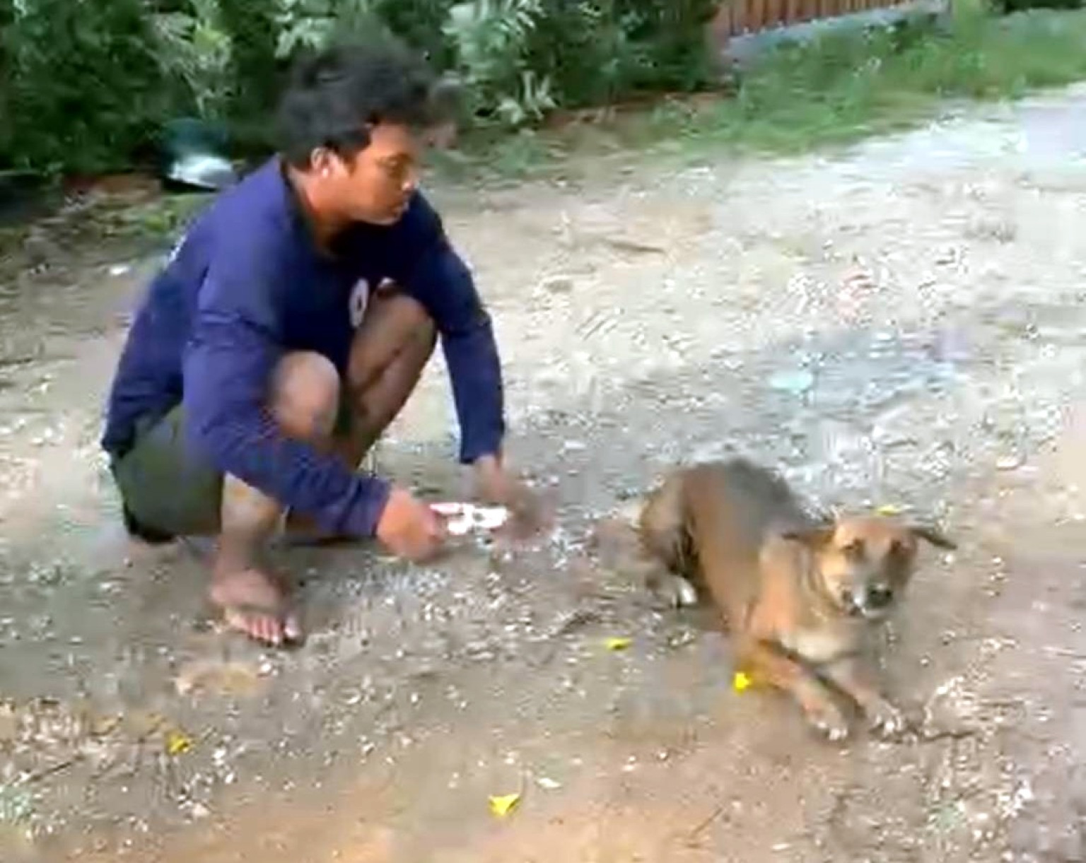 ทางผู้สื่อข่าวจึงลงพื้นที่ไปยังบ้านเจ้าของคลิป ที่หมู่ 2 ต.เตาปูน อ.โพธาราม จ.ราชบุรี พบกับ น.ส.นราธิป นิยมทัศน์ เจ้าของเฟชบุ๊ค และเป็นผู้นำคลิปช่วยน้องหมามาลง เล่าให้ผู้สื่อข่าวฟังว่า เมื่อวานตอนเย็นแฟนของตนไปตัดหญ้าให้วัว จนมาเห็นน้องหมานอนอยู่เห็นมีลวกมัดขา ลำตัว คอและปาก เกิดความสงสาร เลยใช้กรรไกรตัดลวดมาตัดให้น้องหมา น้องหมาตัวนี้ไม่มีเจ้าของ เป็นหมาจร เพศเมีย สีน้ำตาล ที่อาศัยอยู่ในป่า ซอกหินข้างทาง ตอนที่แฟนตนเองเข้าไปช่วยน้องหมาไม่ดุร้าย แต่ดูเหมือนน้องเขาจะเจ็บแต่จะหวงตัวไม่กล้าที่จะให้ใครเข้าใกล้ ตนเห็นน้องหมาตัวนี้ทุกวันไม่ว่าจะขับเข้าขับออกจากบ้านก็จะเห็นตลอด ซึ่งก่อนหน้านี้น้องหมาก็เป็นปกติไม่โดนลวดลัด บ้างวันมีคนเอาข้าวเอาน้ำมาให้น้องกิน แต่ในพิ้นที่นี้มีน้องหมาหลายตัว น่าจะกินไม่อิ่มและตนก็เคยเอาลูกหมาเวลาแม่หมาคลอดลูกออกมาก็กลัวลูกๆเขาไม่มีอะไรกินและต้องมาตากแดดตากฝน แต่พอลูกหมาเริ่มเดินได้สัก2เดือนตนก็มุดเข้าไปจับลูกหมามาถ่ายรูปลงเฟชประกาศหาผู้ที่รักหมาตามหาบ้านใหม่ให้น้องก็มีคนติดต่อมารับน้องไป ส่วนน้องหมาตัวนี้พึ่งจะเห็นเมื่อวานที่น้องโดนลวดมัด ซึ่งหลังจากช่วยน้องหมาเสร็จแล้วเขาก็วิ่งหายไปในป่าข้างทาง และน้องเขาก็เดินออกมาก็ตนสังเกตุน้องเขาจะเอาขาเขี่ยที่ปากเนื่องจากที่ปากมีบาดแผล จนเมื่อตอนเช้าวันนี้เห็นเขานอนอยู่ตรงกองหิน และตอนนี้ก็ไม่เห็นเขาแล้ว ไม่รู้ว่าเขาแอบไปนอนอยู่ตรงไหน น้องน่าจะเจ็บที่ปากเพราะที่ปากน้องโดนรัดมาแรง ส่วนคนที่ทำไม่รู้เลยว่าใครเป็นคนทำ