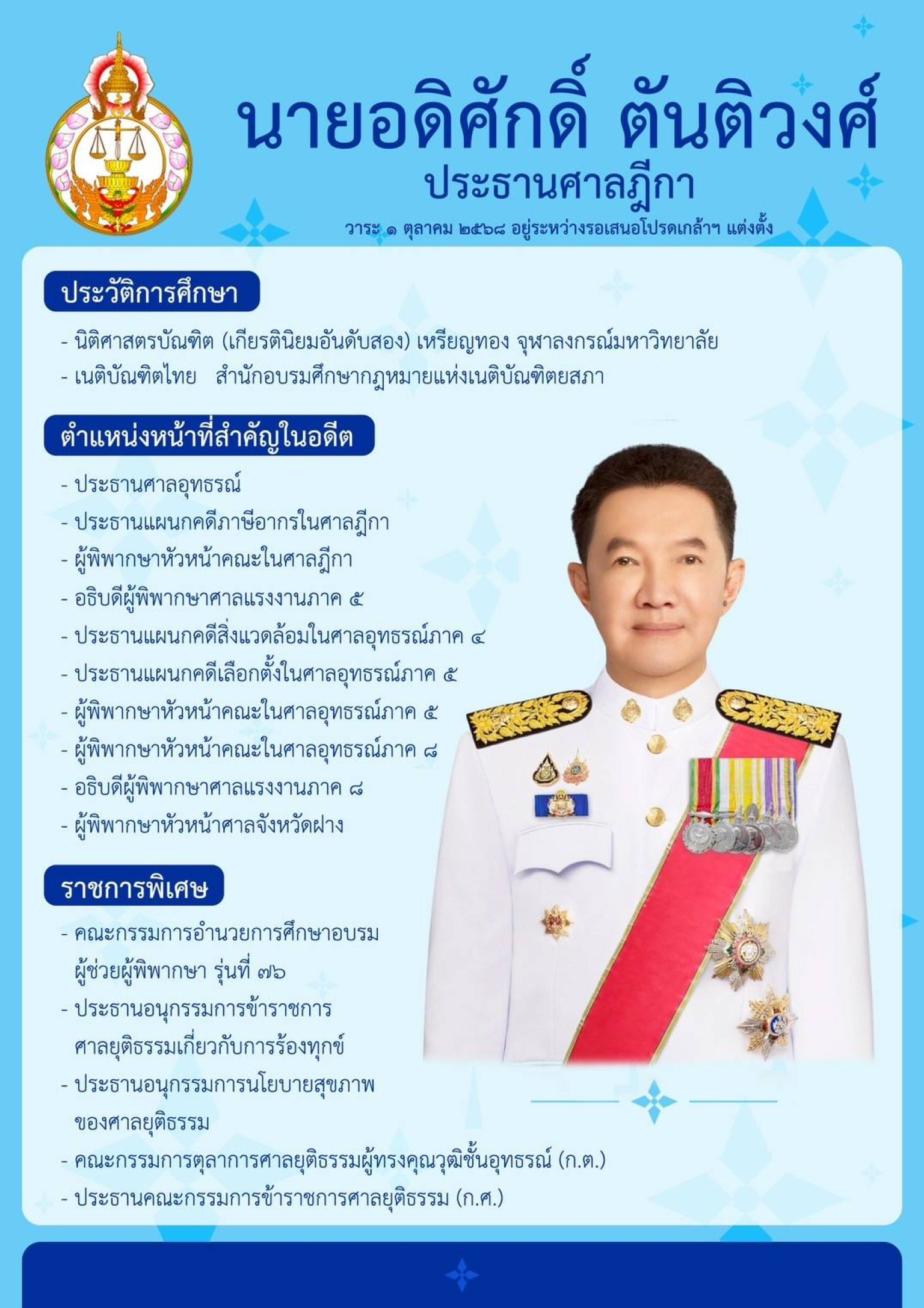 • ประธานคณะกรรมการข้าราชการศาลยุติธรรม (ก.ศ.)