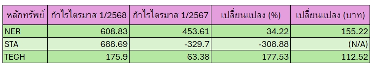 “ข่าวหุ้นธุรกิจออนไลน์” ได้ทำการรวบรวมผลประกอบการของหุ้นในกลุ่มยาง ประกอบด้วยบริษัท นอร์ทอีส รับเบอร์ จำกัด (มหาชน) หรือ NER, บริษัท ศรีตรังแอโกรอินดัสทรี จำกัด (มหาชน) หรือ STA และ บริษัท ไทยอีสเทิร์น กรุ๊ป โฮลดิ้งส์ จำกัด (มหาชน) หรือ TEGH หลังพบว่าในช่วงไตรมาส 1/2568 ที่ผ่านมา รายงานผลการดำเนินงานออกมาเติบโตอย่างโดดเด่นรวมกว่า 1.43 พันล้านบาท