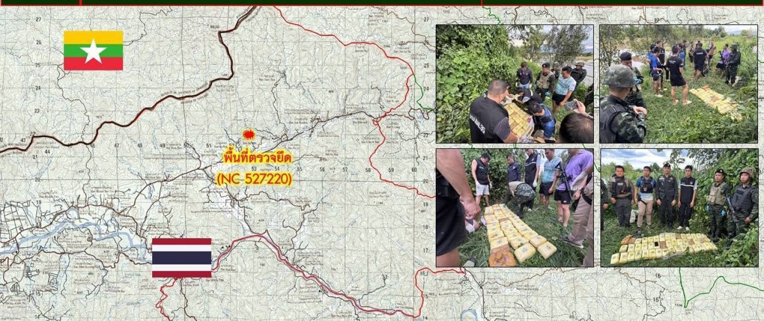วันที่ 27 มิถุนายน 2568 พลโท กิตติพงศ์ ชื่นใจชน แม่ทัพน้อยที่ 3 ในฐานะผู้บัญชาการหน่วยบัญชาการสกัดกั้นและปราบปรามยาเสพติด สารตั้งต้นและเคมีภัณฑ์ชายแดนภาคเหนือ (ผบ.นบ.ยส.35)เปิดเผยว่าจากการจัดชุดลาดตระวนตามแนวชายแดนเพื่อป้องกันการลักลอบค้ายาเสพติดในพื้นที่ของชุดสกัดกั้นที่ 2 เมื่อวันที่ 26 มิถุนายน 2568 ที่ผ่านมา บริเวณ บ้านป่าโหล ตำบลแม่สาว อำเภอแม่อาย จังหวัดเชียงใหม่ ตรวจพบกลุ่มคนขับจักรยานยนต์จำนวน 3 คัน บรรทุกกระสอบต้องสงสัยขับผ่าน เข้ามามายังบริเวณพื้นที่เฝ้าตรวจ แต่เมื่อกลุ่มคนดังกล่าวพบเจ้าหน้าที่ได้ทำการขับ จักรยานยนต์หลบหนีตามเส้นทางลัดเลาะ หน่วยจึงจัดกำลังไล่ติดตามกลุ่มบุคคลดังกล่าว จนถึงบริเวณ บ้านกาวิละ ตำบลแม่สาว อำเภอแม่อาย และ พบรถจักรยานยนต์ถูกจอดทิ้งไว้ จำนวน 2 คัน พร้อมกับกระสอบจำนวน 2 ใบ จึงได้ประสานกำลังจากกองกำลังผาเมือง กก.2 บก.ปส.3 บช.ปส. และ ตชด.334 เข้าตรวจสอบพื้นที่ดังกล่าว