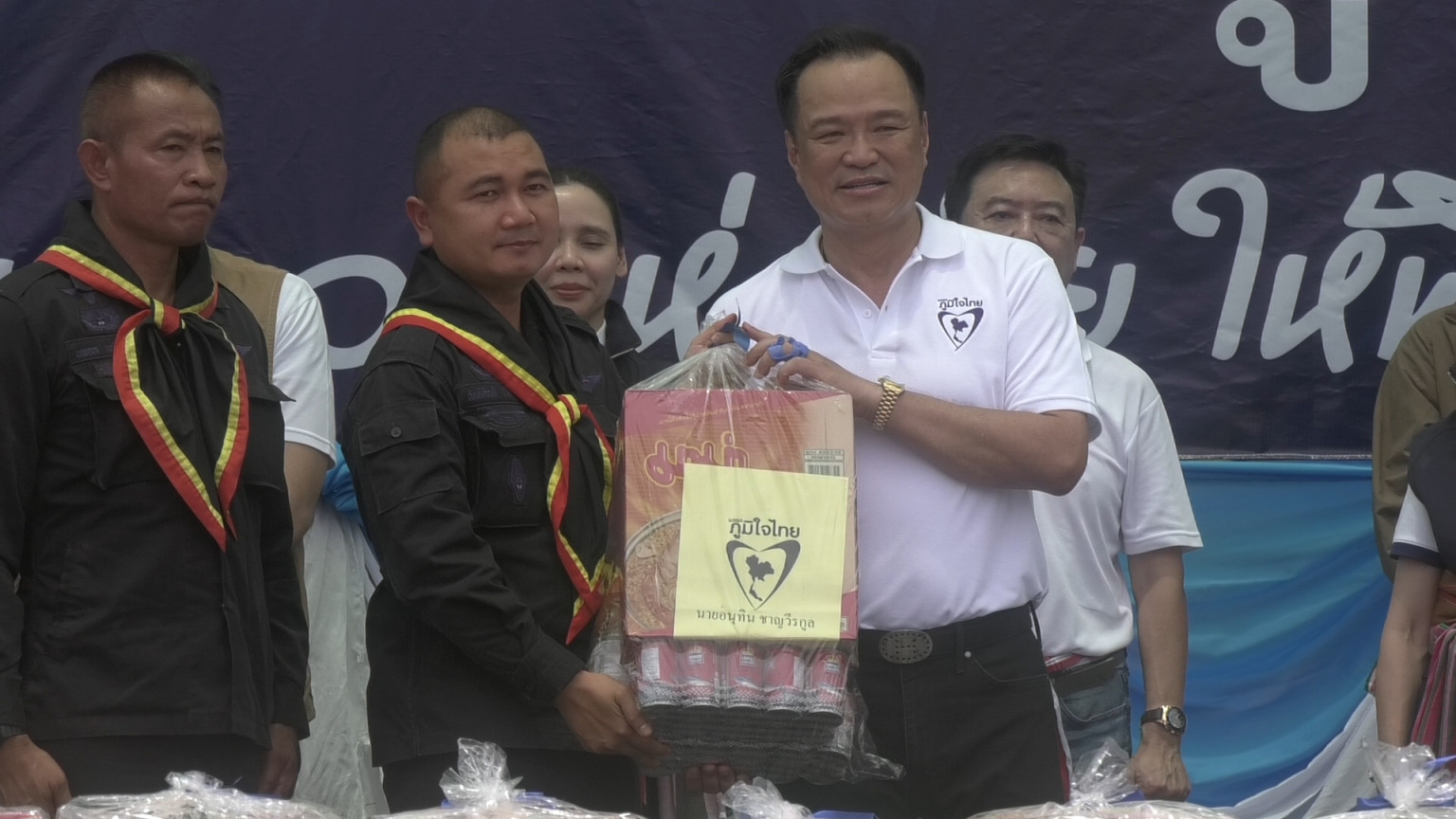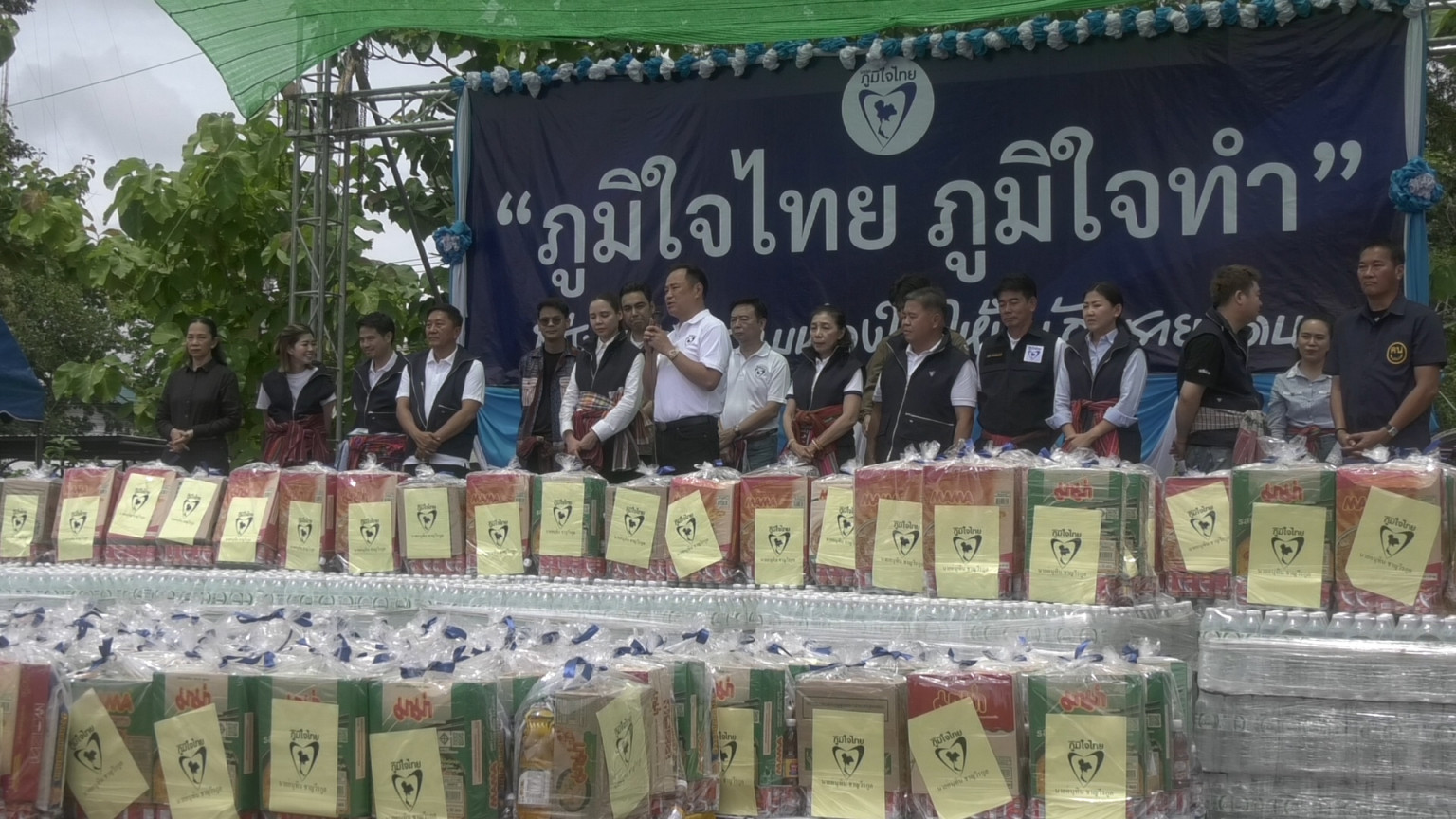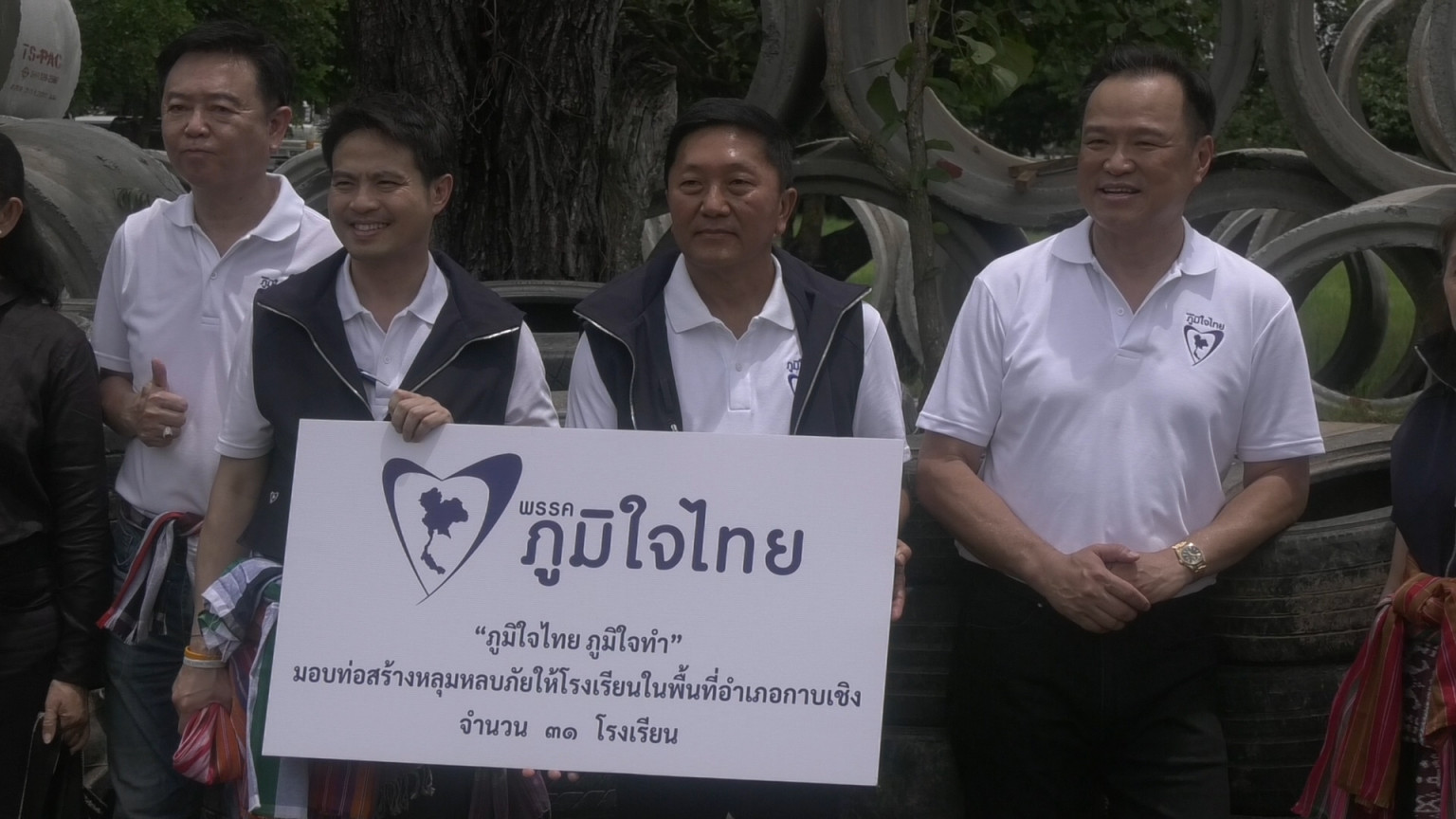 สุรินทร์ "อนุทิน" พร้อมลูกพรรค ลงพื้นที่มอบอุปกรณ์ทำหลุมหลบภัย โรงเรียนตามแนวชายแดน