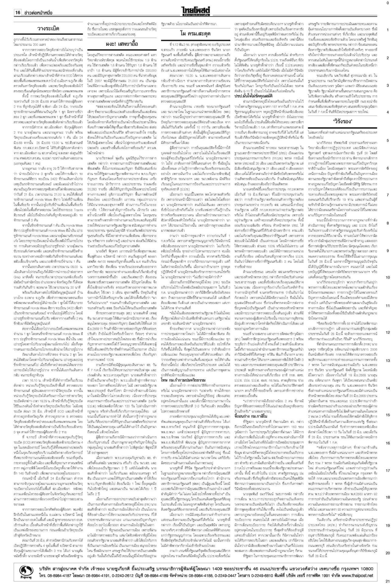 ฉบับวันที่ 27 มิถุนายน 2568