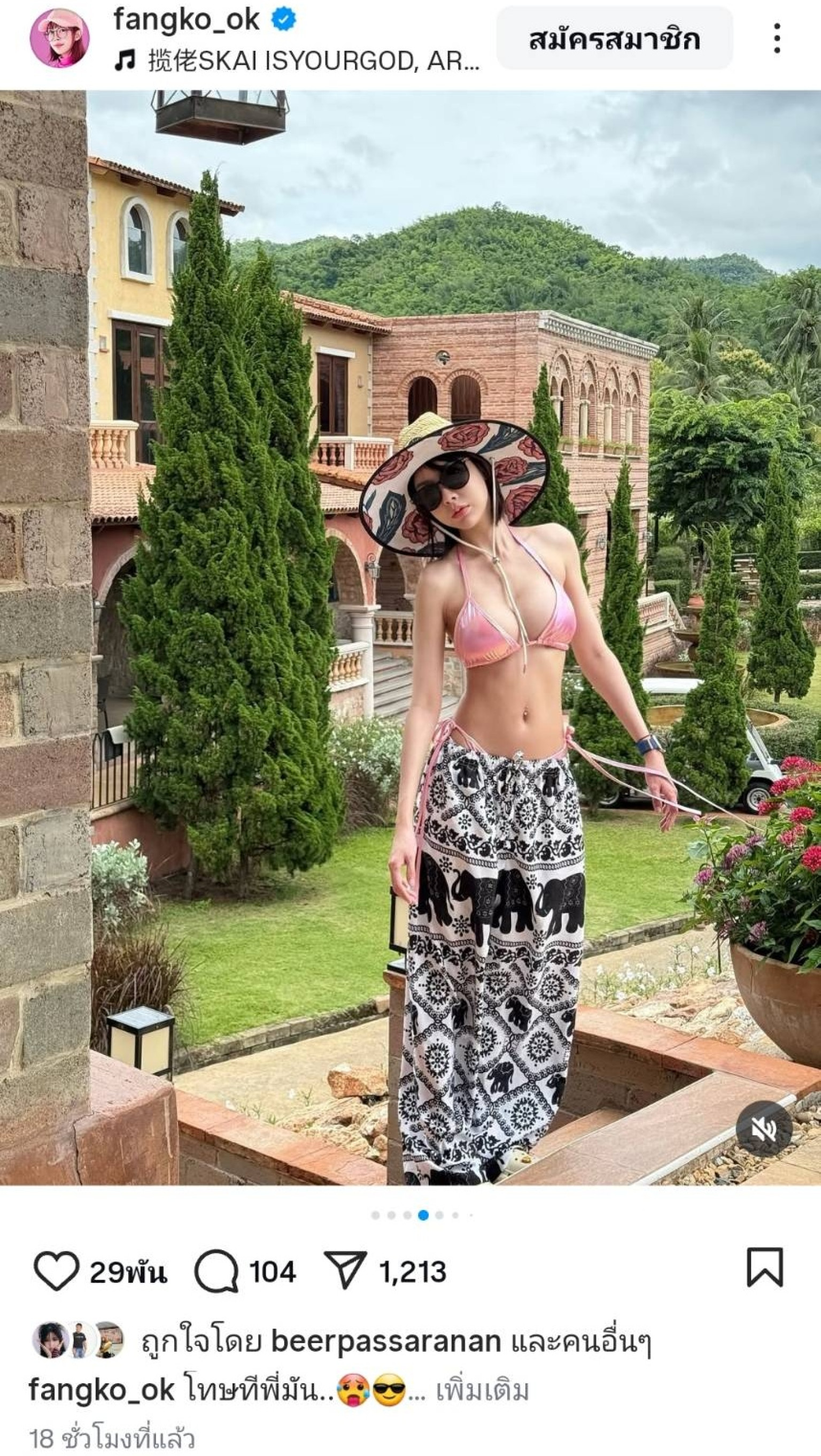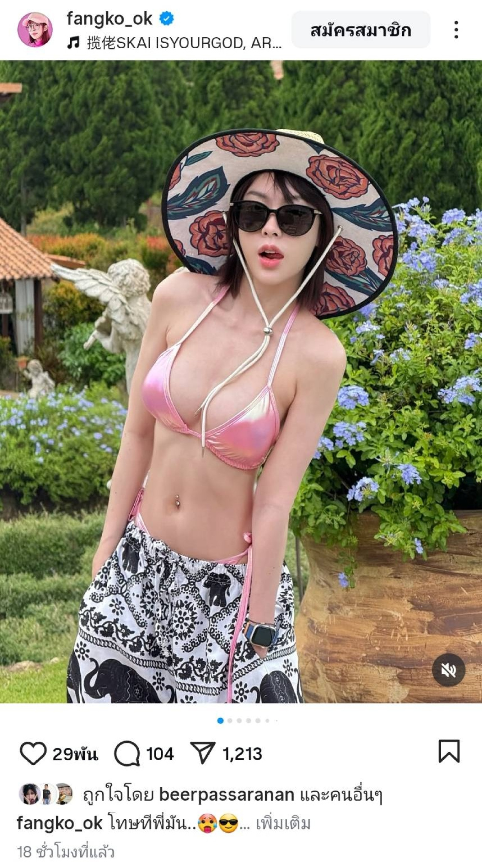 สร้างกระแสฮือฮาให้แฟนๆได้ลุ้นกันเป็นประจำ สำหรับนางแบบสาวสุดฮอต “ฟางโกะ OK” ล่าสุด เจ้าตัว ทำแฟนๆ ฮือฮาอีกครั้ง หลังจากโพสต์ภาพลุคสุดเซ็กซี่ในชุดบิกินี อวดอึ๋มล้นทะลักเกินต้าน พร้อมหมวกแฟชั่นสุดเก๋ที่มาพร้อมแว่นกันแดดขนาดใหญ่ ท้าลมร้อนในสวนสวยที่มีภูมิทัศน์สุดหรู เรียกยอดไลก์และคอมเมนต์จากแฟนคลับแบบถล่มทลาย