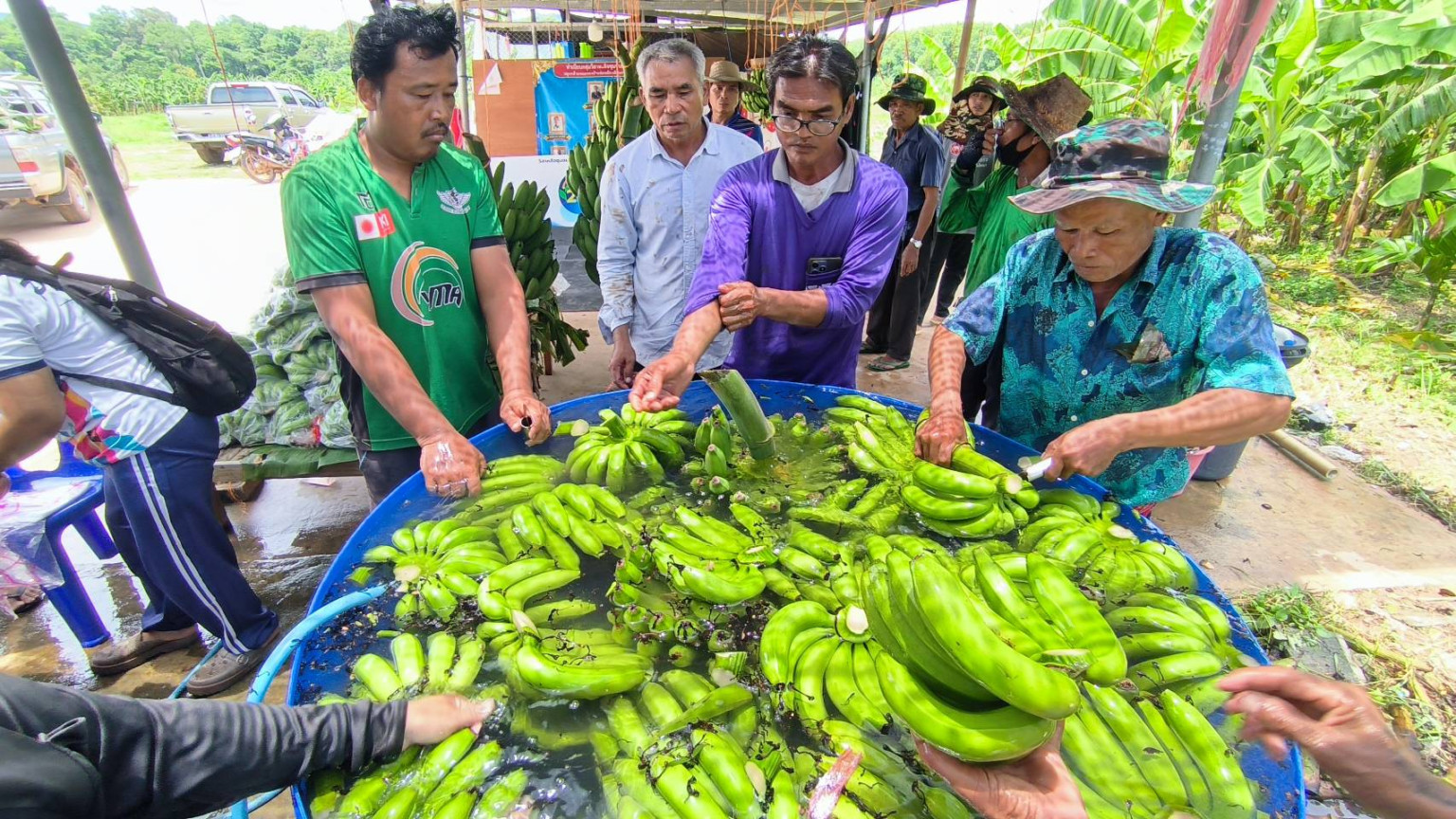 เกษตรอำเภอเลิงนกทา จ.ยโสธร ส่งเสริมให้เกษตรกรปลูกกล้วยหอมทองสายพันธุ์แขนทอง สร้างรายได้ใช้ตลาดนำการผลิตยกระดับคุณภาพกล้วยหอมทองมาตรฐาน GAP โดยมีเซเว่นฯรับซื้อราคากิโลกรัมละ 16 บาท
