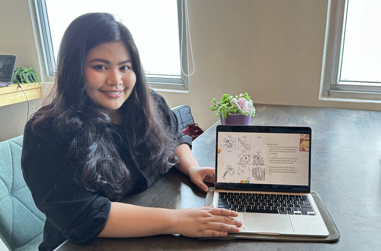 คุณสุดารัตน์ ภู่ทอง นักศึกษาปริญญาโท สาขาวิศวกรรมคอมพิวเตอร์ กล่าวว่า การเป็นครูสอนคอมพิวเตอร์และศิลปะให้กับเด็ก ๆ ทำให้เห็นเด็กบางคนมีพัฒนาการที่ไม่เป็นไปตามวัย บางคนไม่ยอมพูด อาการย้ำคิดย้ำทำ ในขณะเดียวกันก็เรียนปริญญาโทที่มีการสอนเกี่ยวกับ AI จึงมีแนวคิดนำศาสตร์ทั้งสองด้านนี้มาพัฒนาให้เกิดประโยชน์มากที่สุด