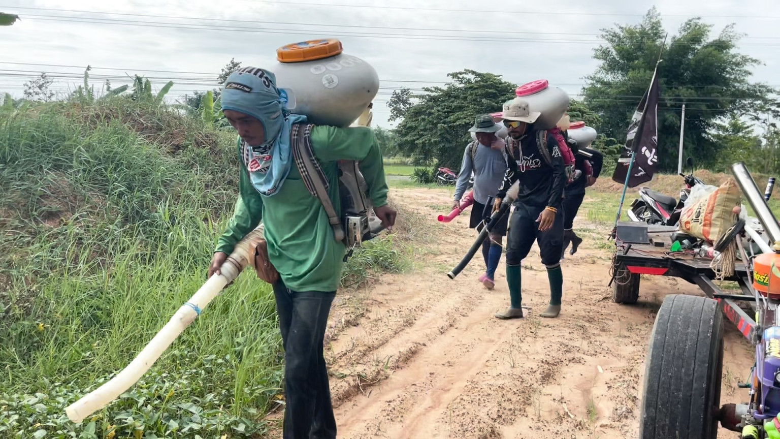 จากการสอบถามทราบว่า หลังจากที่มีการเจราจหยุดยิงระหว่างทหารไทยกับทหารฝั่งกัมพูชา และวันนี้เสียงปืนเงียบสงบ เลยได้นัดหมายพากันมาลงแขกใส่ปุ๋ยในนาข้าวกัน และที่ต้องเร่งรีบก็เพราะต้องไปใส่ปุ๋ยแปลงนาของเพื่อนอีกหลายแปลง เพื่อให้เสร็จทันในวันนี้ เพราะไม่เชื่อในคำพูดของฝั่งประเทศกัมพูชา ที่ไม่เคยทำตามสัจจะสัญญามาตลอดที่ผ่านมา ชาวบ้านกล่าวอย่างเร่งรีบก่อนจะนำเครื่องพ่นปุ๋ยขึ้นหลังเดินลงแปลงนาไป