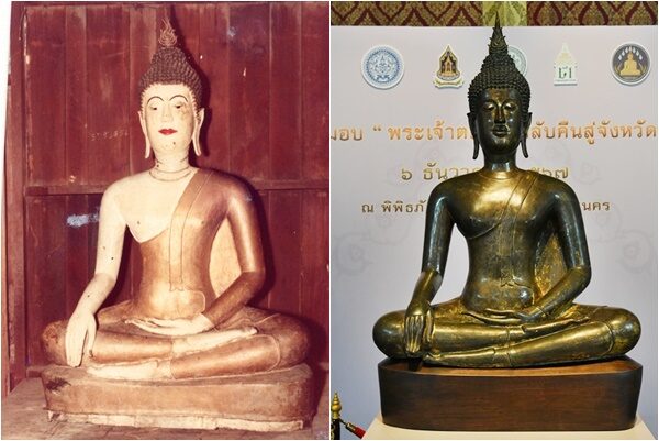 ปรากฏอยู่ในสถานประมูลโบราณวัตถุในยุโรป โดยให้รายละเอียดเป็นภาพถ่ายและข้อมูลในเชิงลึก จึงเป็นช่องทางสำคัญในการประสานงานกับผู้ครอบครอง และสามารถนำพระพุทธรูปกลับคืนสู่ประเทศไทยได้ในที่สุด