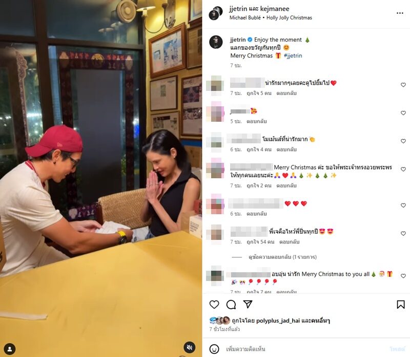 โมเมนต์อบอุ่นในครอบครัวกับค่ำคืนคริสต์มาสเจ เจตริน พร้อมใจ ปิ่น เก็จมณี โพสต์คลิป “Enjoy the moment แลกของขวัญกันทุกปี Merry Christmas #jjetrin”