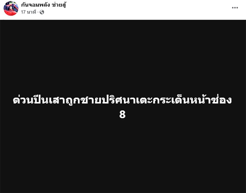 ซึ่ง กัน จอมพลัง ได้โพสต์เฟซบุ๊กว่า "ด่วนปีนเสาถูกชายปริศนาเตะกระเด็นหน้าช่อง 8"