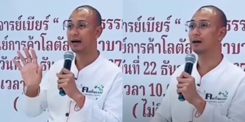 แฟนๆ แชร์คลิป อ.เบียร์ คนตื่นธรรม ไปบรรยายในงานหนึ่ง เมื่อวันที่ 22 ธ.ค.67 ตอนหนึ่งว่า “ทุกวันนี้กูเป็นเจ้าหวยแล้วนะ เจ้าพ่อในการใบ้หวย 5 งวดติด นี่รับปาก 5 งวดติดเมื่อไหร่จะเอาพวงมาลัยมาคล้องกระโถน กระโถนกูศักดิ์สิทธิ์แล้วทุกวันนี้”