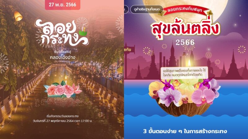 3.เว็บไซต์คลองโอ่งอ่างเปิดให้ลอยกระทงออนไลน์ซึ่งมีความพิเศษกว่าเว็บไซต์อื่น ๆ ที่สามารถชมกระทงแบบดิจิทัลจากโปรเจคเตอร์ขนาดใหญ่กันที่คลองโอ่งอ่าง แต่มีเงื่อนไขว่า สามารถเข้าไปลองเล่นกันได้ตั้งแต่วันที่ 27 พ.ย.2566 เวลา 17.00 น. เป็นต้นไป (คลิกร่วมลอยกระทงได้ที่ คลองโอ่งอ่าง)