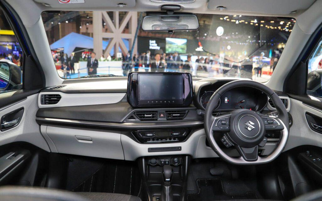 ภายในงานออกแบบคอนโซลหน้าคล้ายรุ่นอื่นๆของ Suzuki ตั้งแต่มาตรวัดเรืองแสงพร้อมจอแสดงข้อมูล MID จอสัมผัสขนาดใหญ่แบบลอยตัว SmartPlay Pro เชื่อมต่อ Android Auto รูปแบบใหม่ Apple CarPlay พร้อมสั่งงานด้วยเสียงกับคำว่า ‘Hi Suzuki’ และ OTA (Over-The-Air Updates) พวงมาลัยมัลติฟังก์ชันสามก้านทรงคุ้นตาแบบท้ายตัด เบาะนั่งสปอร์ต 5 ที่นั่งพร้อมเบาะนั่งหลังพับได้แบบ 60/40