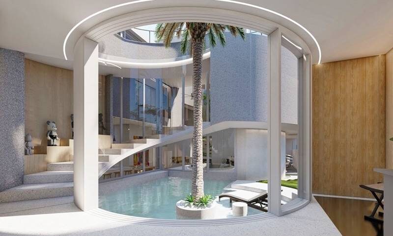 แต่ดีเทลบ้านเราเยอะไง? “ใช่ เพราะว่าจะเป็นบ้านที่สวยที่สุดในประเทศไทย ผู้ออกแบบเขาส่งประกวดที่ต่างประเทศ เป็นโหมดหมวดที่เรียกว่าฟิวเจอร์เฮ้าส์ คิดว่าน่าจะเป็นบ้านที่สวยอยู่ และก็ล้ำนิดนึงครับ อยากทำบ้านที่มีบันไดข้างแล้วมีกระจกใส มองจากข้างบนจะเป็นเลข 8 อินฟินิตี้ อันนี้เป็นห้างครับไม่ใช่ทำบ้าน(หัวเราะ)”