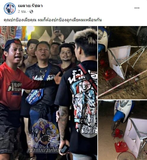 หลังจากนั้นชั่วข้ามคืน "เมลาย" ได้โพสต์ภาพระหว่างที่ตัวเองกำลังเผชิญหน้ากับ แจ็ก แปปโฮ รวมทั้งภาพข้าวของที่ทุบพังเสียหาย โดยระบุข้อความว่า "คุณปกป้องเมียคุณ ผมก็ต้องปกป้องลูกเมียผมเหมือนกัน"