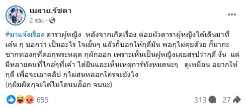 'เมลาย รัชดา' โพสต์บ้าง ผมก็ปกป้องลูกเมียผม แจงปมจะต่อยผู้หญิง เชื่อหวังมีคลิป