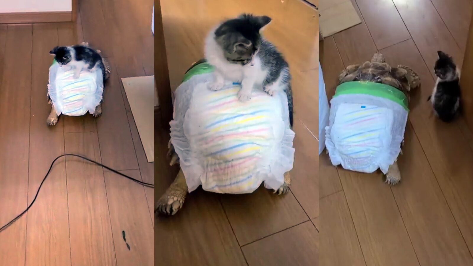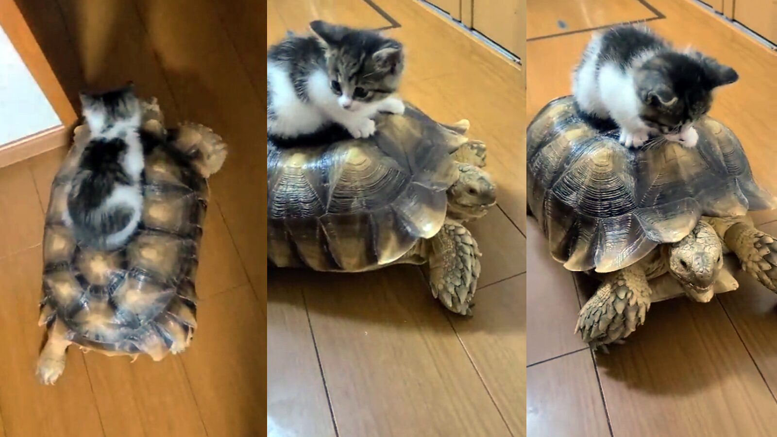 ถือเป็นมิตรภาพสัตว์โลกที่แสนน่ารัก เมื่อผู้ใช้ทวิตเตอร์ชาวญี่ปุ่น (@nyanko_kame78) ได้โพสต์คลิปโชว์ความน่ารักระหว่างลูกแมวตัวน้อยกับเต่า ที่ถึงแม้จะต่างสายพันธุ์แต่ก็เข้ากันได้ดีสุด ๆ ถึงขั้นขี่หลังกันได้อย่างสบาย ๆ