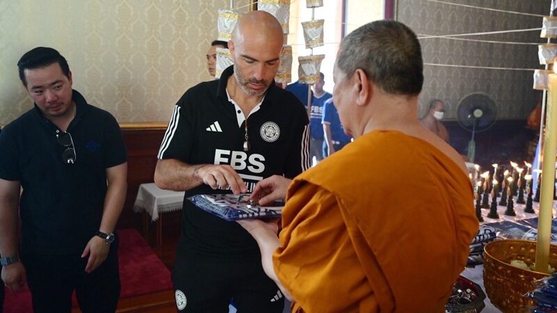 ต๊อบ อัยวัฒน์ นำทัพเลสเตอร์ ขอพร เจ้าคุณธงชัย จุดเทียนเสริมชะตา เสกผ้ายันต์ตราสโมสร ที่วัดไตรมิตร