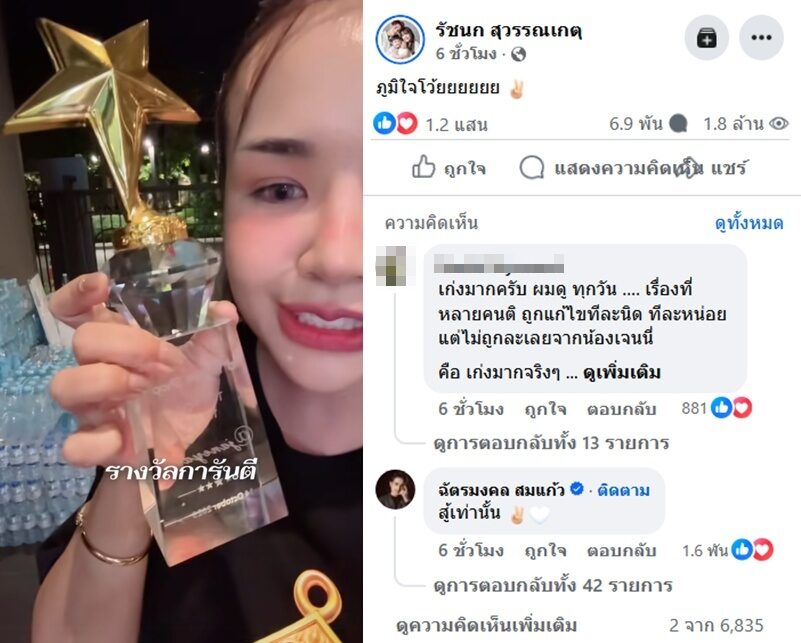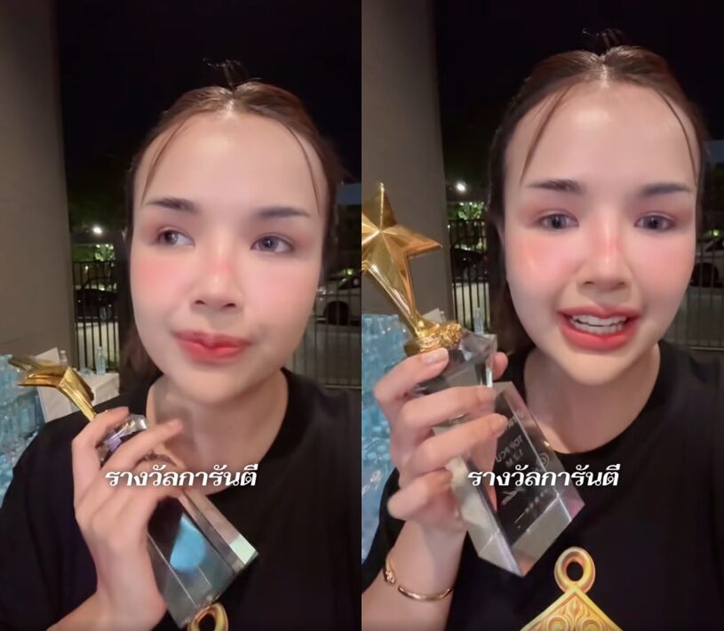 ยิ้มปลื้มปริ่มใจถือรางวัลความสำเร็จโชว์ให้ได้ชื่นชม เจนนี่ ได้หมดถ้าสดชื่น โพสต์คลิปพร้อมแคปชั่นว่า “ภูมิใจโว้ยยยยยย” โดยเจ้าตัวเผยความภูมิใจสุดๆด้วยว่า