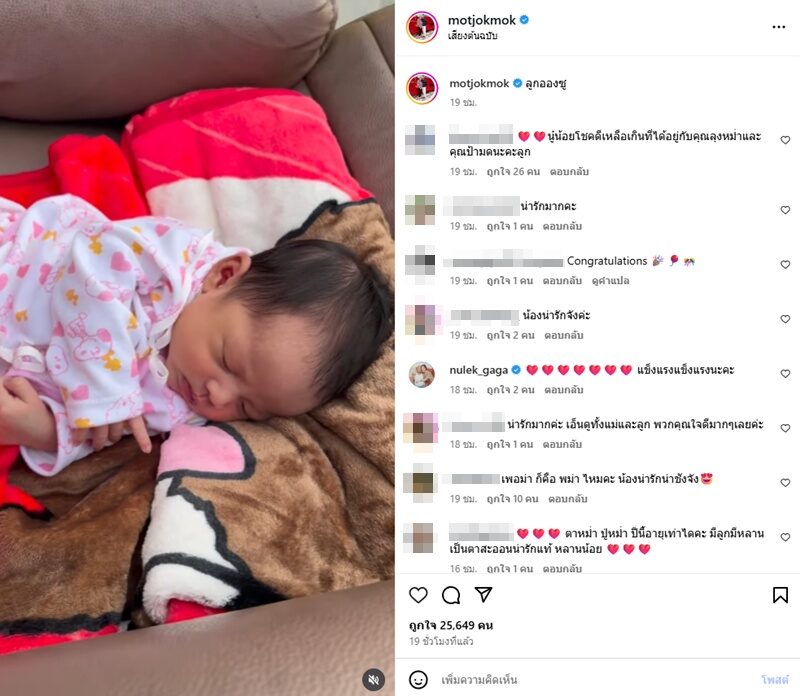 ผูกพันกันมาตั้งแต่ในท้องแล้ว มีความสดใสเสียงทารกน้อยมาอีกครั้งให้บ้านได้มีสีสันกันเลย ต้อนรับสมาชิกใหม่ โดย มด ภรรยา หม่ำ จ๊กมก ตลกดังโพสต์ คลิป เด็กทารกน้อยน่าเอ็นดูกำลังนอนหลับ ขณะ หม่ำ จ๊กมก นั่งอยู่ข้างๆ