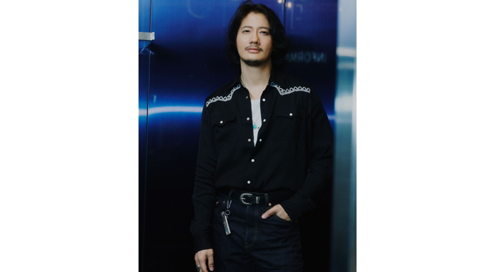 เฟิด - คาริญญ์ยวัฒ ดุรงค์จิรกานต์ นักร้องนำวง Slot Machine ดึงเอกลักษณ์ของตนเองเวลาแสดงคอนเสิร์ตมาดีไซน์เป็นเสื้อสูทผ้า Raw Denim สีน้ำเงิน รองผ้าด้านใน สีเทา ตกแต่งด้วยงานปักโลโก้ชื่อศิลปินบริเวณด้านในปกคอด้านหลัง เรียบ เท่ และมีพลัง