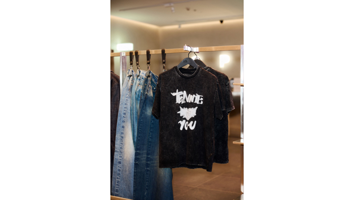 NCT TEN (เตนล์) หรือ ชิตพล ลี้ชัยพรกุล ศิลปินหนุ่มไทยมากความสามารถ หนึ่งในสมาชิกวง NCT บอยแบนด์สัญชาติเกาหลีใต้ที่กำลังมาแรงในยุคนี้ ได้ดีไซน์เสื้อยืดหนึ่งเดียวในคอลเลกชั่นที่ถ่ายทอดตัวตนของเตนล์ผ่านลายเอกลักษณ์เฉพาะตัว ตีความใหม่ด้วยเทคนิคการตัดปะ (Applique) และงานปัก เพิ่มมิติและความโดดเด่นของผ้ายืดฟอกสีให้มีลักษณะคล้ายยีนส์สีดำแบบ Worn-In ดิบ เท่ และทันสมัย เหมาะทั้งใส่เดี่ยวเป็น Statement Piece หรือแมตซ์คู่กับยีนส์หรือแจ็คเก็ตได้ทั้งลุคสตรีท และสมาร์ทแคชวล หมายเหตุ : ศิลปินไม่สามารถเดินทางมาร่วมงานได้***