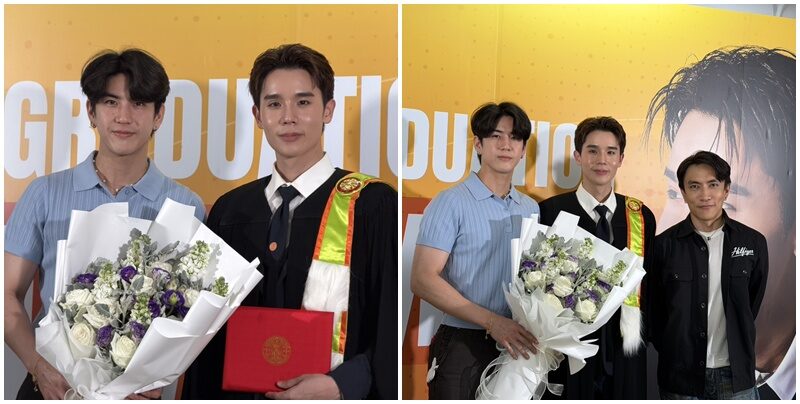 มีของขวัญอะไรให้ตัวเองไหม? “ผมว่าแค่เรารู้สึกว่าแค่ผมได้ใช้ชุดนี้แล้วก็รู้สึกดีใจมากๆ แล้วเมื่อกี้เอาใบปริญญาไปให้คุณแม่ก็ได้เห็นคุณแม่กำลังจะร้องไห้ ผมว่าก็ถือเป็นรางวัลชีวิตผมแล้วครับ คุณแม่เขาอยากได้ผมก็ถือว่าทำให้พ่อแม่ผ่อนคลายไปได้หนึ่งแล้วเหลืออีกครึ่งนึงของเขาก็คือน้องสาว เดี๋ยวว่ากันต่อไป”
