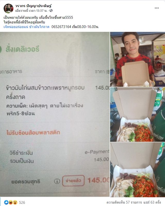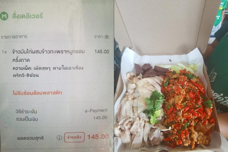 กลายเป็นเรื่องราวที่ถูกพูดถึงอย่างกว้างขวาง หลังจากที่ผู้ใช้เฟซบุ๊กรายหนึ่ง ได้โพสต์ภาพอาหารที่ลูกค้าสั่งผ่านแอพพลิเคชั่นเดลิเวอรี่ เป็นเมนูข้าวมันไก่ และ กะเพราหมูกรอบ อยู่ในกล่องเดียวกันในราคา 145 บาท ซึ่งจากภาพจะเห็นว่า กะเพราะหมูกรอบเต็มไปด้วยพริกแดง เนื่องจากลูกค้าสั่งคำสั่งว่า "เผ็ดสุด ๆ ตายไม่เอาเรื่อง พริก 5-8 ช้อน"