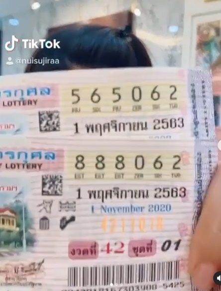 เจ้าตัวโพสต์คลิปในแอพฯ tiktok ขณะเต้นโชว์สลากกินแบ่งรัฐบาลที่ถุกรางวัล 4 ใบ เลขท้าย 3 ตัว พร้อมเผยด้วยว่า
