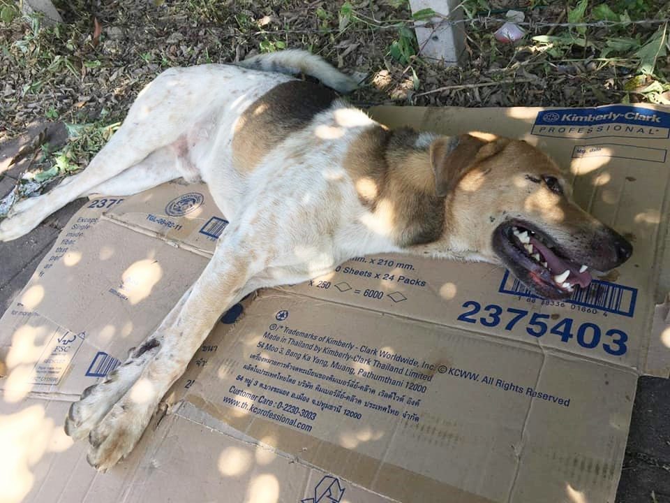 หาคนช่วยรับเคสค่ารักษาค่ะ!!! เจ้าตัวนี้เป็นหมาจร โดนรถชนนอนตากแดดอยู่ข้างถนนตรงข้ามโรงแรมโกลเด้นบีช ถ้าไม่มีใครช่วยก็คงตากแดดร้อนจนตาย?????? มีใครพอเมตตารับเคสไหมค่ะ!!