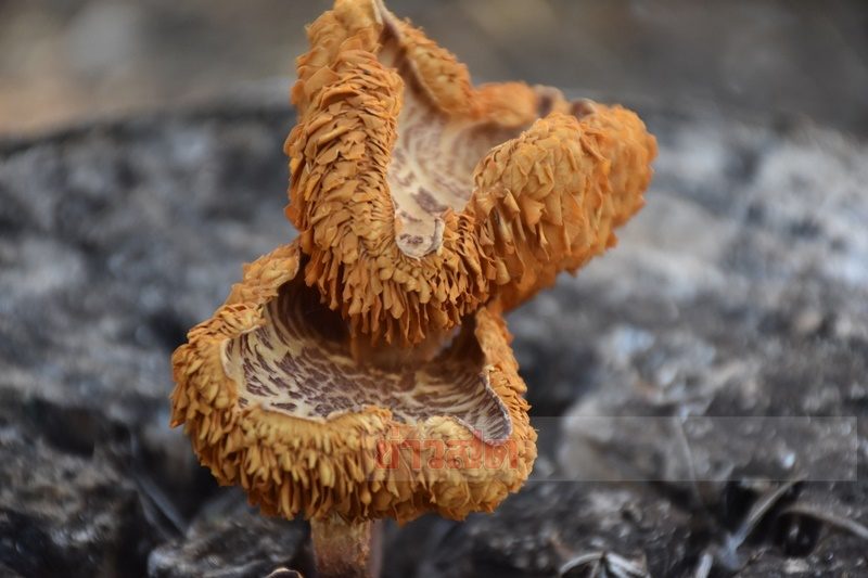 น.ส.พิราวรรณ เจ้าของบ้าน กล่าวว่า ขณะที่จอดรถเก๋งออกจากโรงจอด เพื่อไปทำธุระ สายตาได้เหลือบมองเห็น สีเหลืองทองสะดุดตา อยู่บนตอมะม่วงเขียวเสวยที่ตายแล้ว จึงปิดเครื่องและรีบลงมาดู พบว่า เป็นเห็ดลักษณะแปลกไม่เคยเห็นมาก่อน และไม่รู้ว่าขึ้นที่ตอมะม่วงมานานหรือยัง จึงเรียกญาติๆเพื่อนบ้านมาช่วยดู