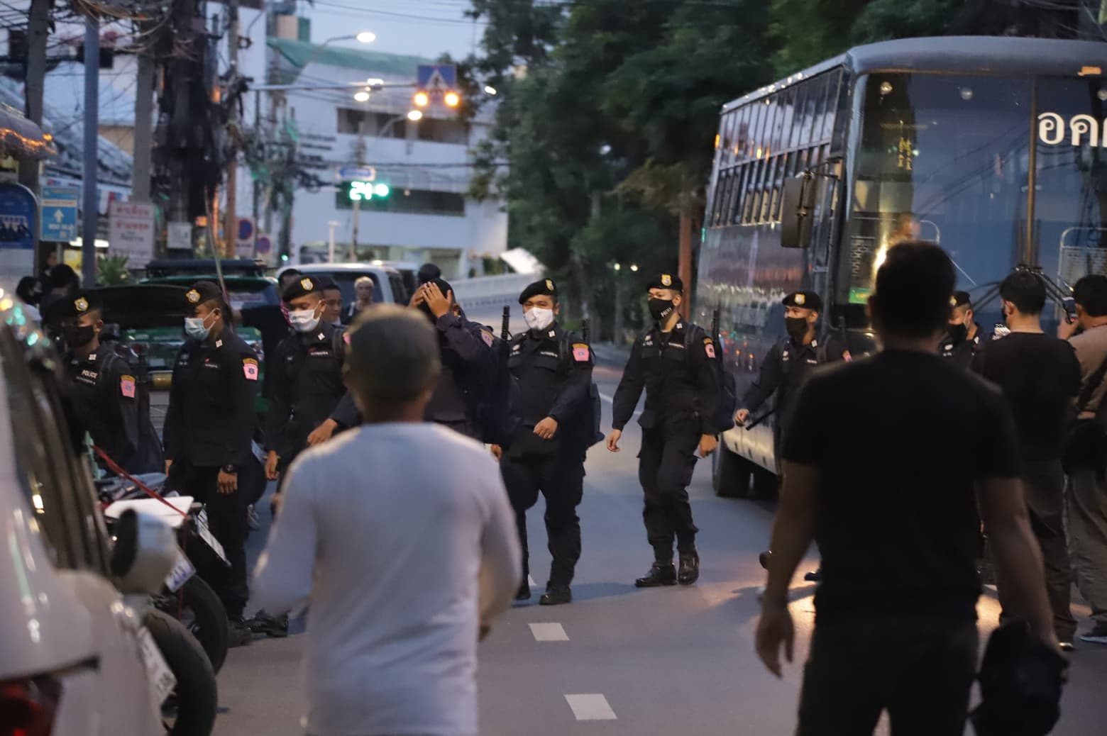 กำลังตร. 1 รถบัสเคลื่อนประชิดอนุสาวรีย์ประชาธิปไตย เตรียมรถฉีดน้ำพร้อมภารกิจ ผู้ชุมนุมยังปักหลักค้างคืนยืดเยื้อ