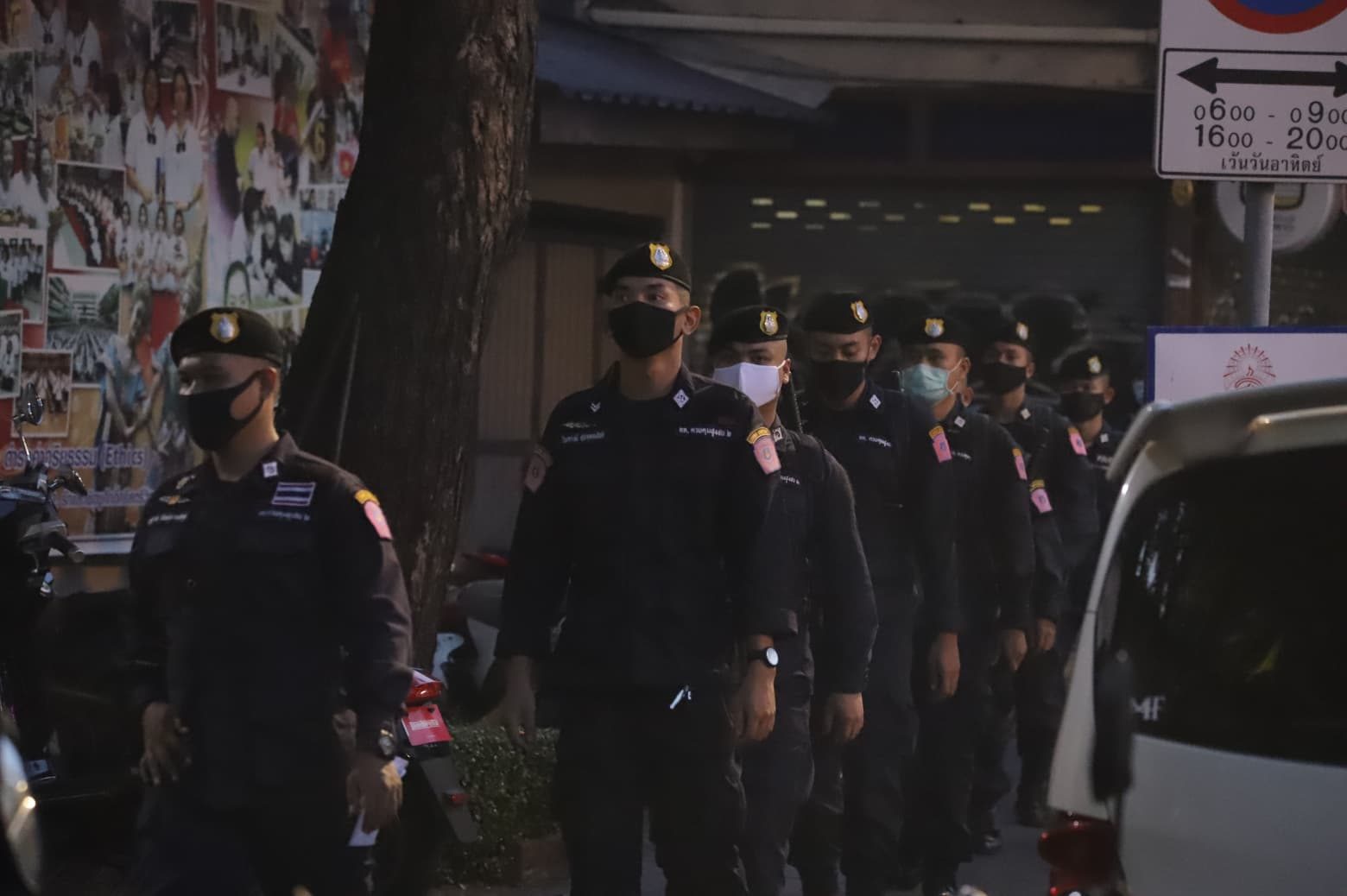 จากนั้นเวลา 19.00 น. ผู้สื่อข่าวรายงานว่า มีกำลังตำรวจควบคุมฝูงชน 1 รถบัส เข้ามาตรึงกำลังดูแลความสงบ ภายในโรงเรียนสตรีวิทยา พร้อมเตรียมรถฉีดน้ำมาด้วย
