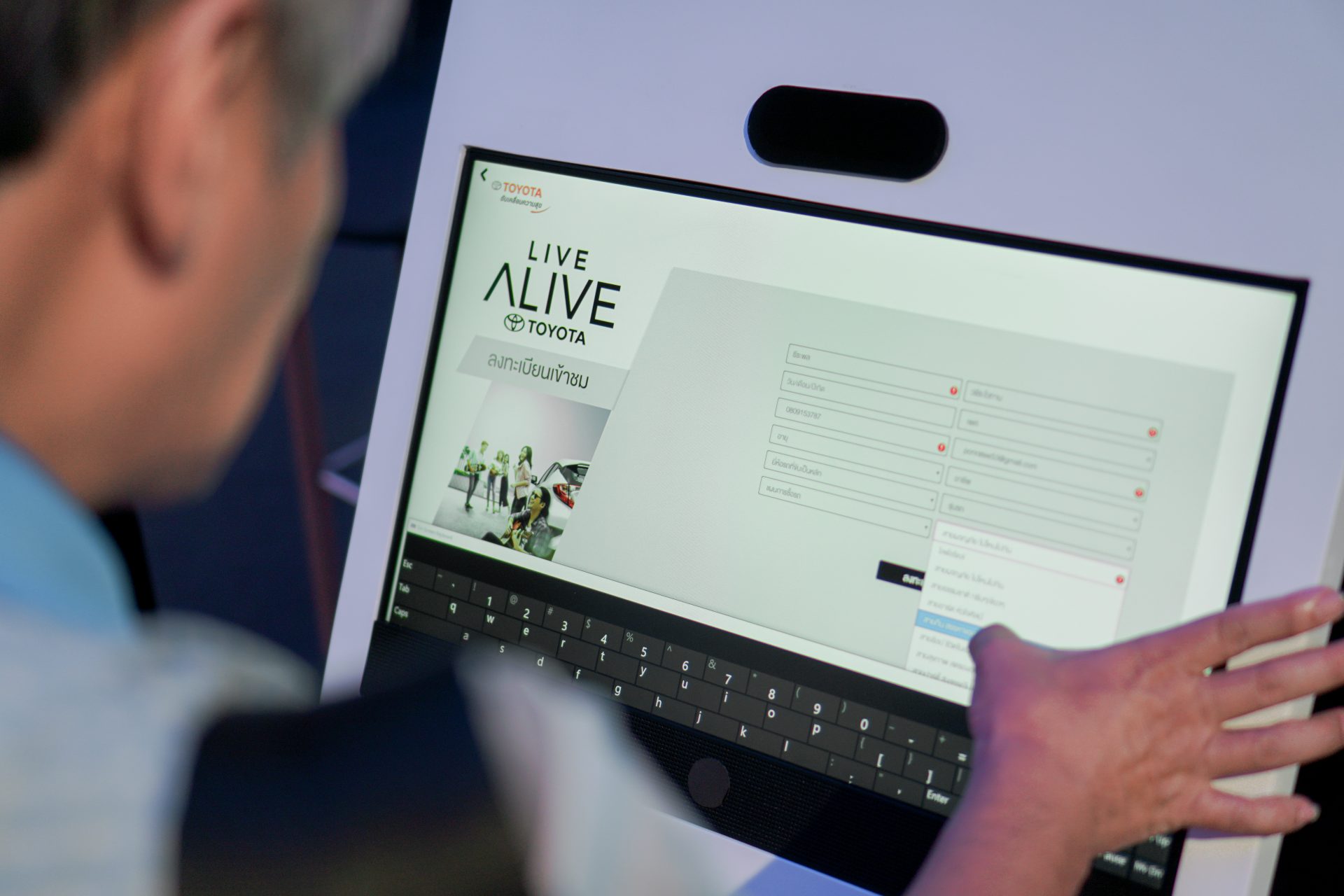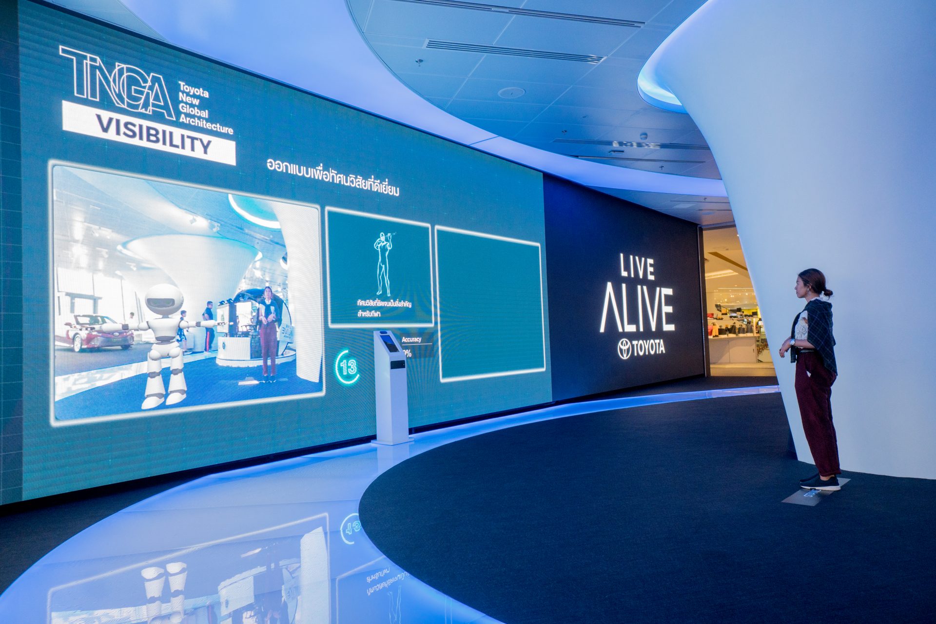 - ตื่นตาตื่นใจกับ Lifestyle Experience LED Wall ที่โอบล้อมอยู่ภายใน TOYOTA ALIVE SPACE มาพร้อมการเล่าเรื่องราวที่แสดงถึงเรื่องราวการผสมผสานระหว่างโมเดิร์นไลฟ์สไตล์ของมนุษย์ กับ ยานยนต์ เข้าไว้ด้วยกันอย่างลงตัว