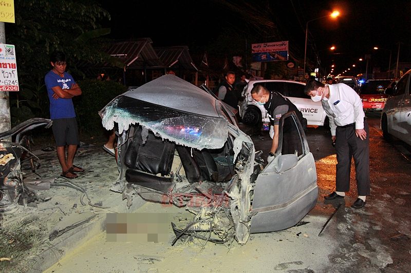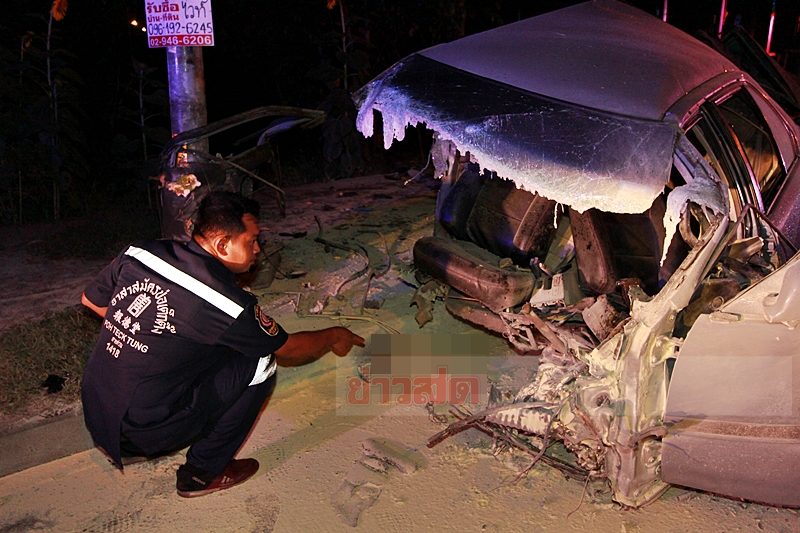 หนุ่มขับเก๋งเสียหลักพุ่ง ชนเสาไฟฟ้า เต็มแรง ขาขาด ร่างกระเด็นเสียชีวิตริมถนน