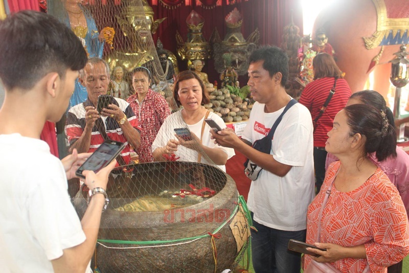 ประชาชนเดินทางมาส่องเลขเด็ดอ่างน้ำมนต์ฤาษีเณร