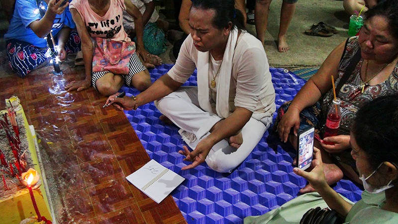 ร่างทรงกุมารทองเขียนเลขเด็ดลงบนกระดาษ