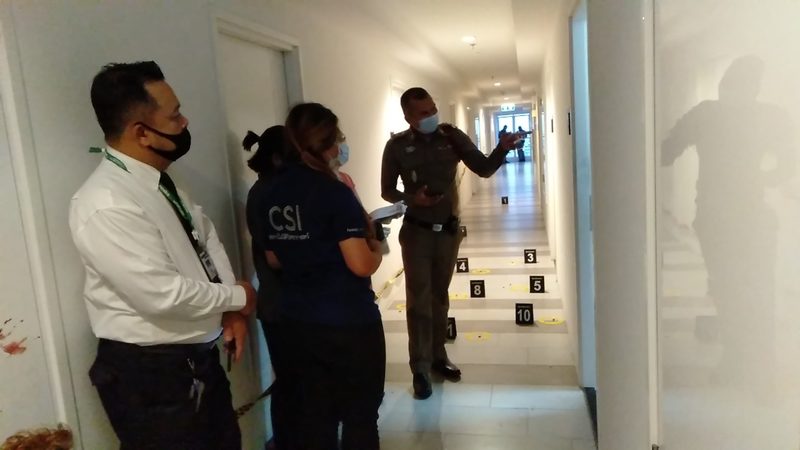 ที่เกิดเหตุเป็นอาคารสูง 22 ชั้น ที่ห้องพักชั้น 12 พบศพ นายภณ (นามสมมติ) อายุ 31 ปี ผู้ก่อเหตุและเป็นสามีเก่า สภาพนั่งเสียชีวิตอยู่ที่ปลายเตียงนอน ข้างตัวพบปืนพกสั้นตกอยู่ และ น.ส.ษา (นามสมมติ) นอนเสียชีวิตอยู่บนเตียงนอน นอกจากนี้ ยังพบผู้บาดเจ็บ 1 ราย คือ นายพงศ์ (นามสมมติ) ซึ่งเป็นสามีใหม่ของ น.ส.ษา สภาพถูกยิงที่ต้นแขนซ้าย 1 นัด เจ้าหน้าที่เร่งช่วยเหลือนำตัวส่งโรงพยาบาลเกษมราษฎร์รัตนาธิเบศร์