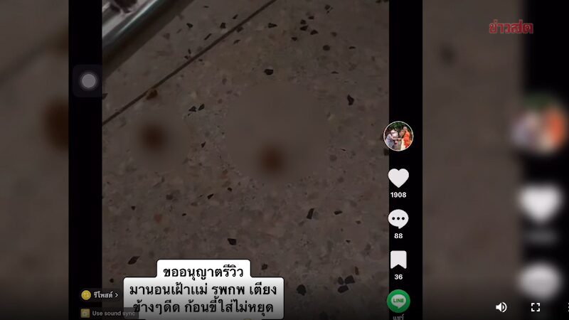 จนกระทั่งเวลา 6 โมงเช้า ตนจึงได้ตื่นนอนและยังสังเกตเห็นก้อนวัตถุร่วงหล่นอยู่พื้นใต้เตียงคนไข้ จึงหยิบมาดูแต่แฟนของตนได้ห้ามไว้ จึงได้สังเกตอย่างละเอียดอีกครั้ง จึงรู้ว่าเป็นอุจจาระ ซึ่งตนได้บันทึกคลิปวิดีโอไว้และได้โพสต์ติ๊กต็อกหลายวันแล้ว แต่พึ่งมีเป็นกระแสในโลกโซเชียล