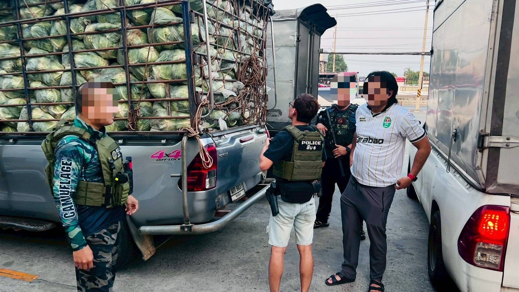 จนพบว่าเมื่อวันที่ 4 เม.ย.2569 ช่วงเช้า พบ รถกระบะคอกคันเป้าหมาย ขนบรรทุกผัก เต็มคันรถ มาจากบริเวณแนวชายแดน เจ้าหน้าที่ตำรวจชุดจับกุม จึงขับรถยนต์ติดตาม สะกดรอย จนกระทั่งถึงบริเวณที่จับกุม พบคนขับมาจอดบริเวณดังกล่าว