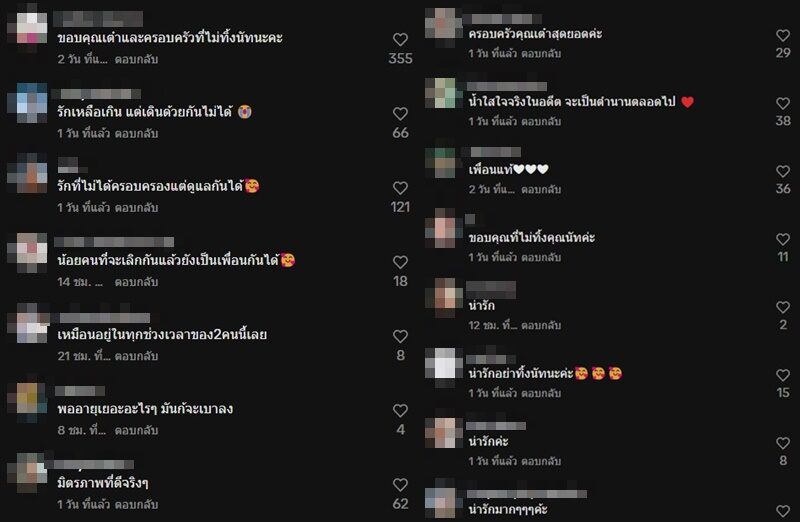 ท่ามกลางแฟนๆ ก็คอมเมนต์กันมากมายถึงมิตรภาพของทั้งสองคน อาทิ เหมือนอยู่ในทุกช่วงเวลาของ2คนนี้เลย , ขอบคุณเต๋าและครอบครัวที่ไม่ทิ้งนัทนะคะ , น้อยคนที่จะเลิกกันแล้วยังเป็นเพื่อนกันได้ , มิตรภาพที่ดีจริงๆ เป็นต้น