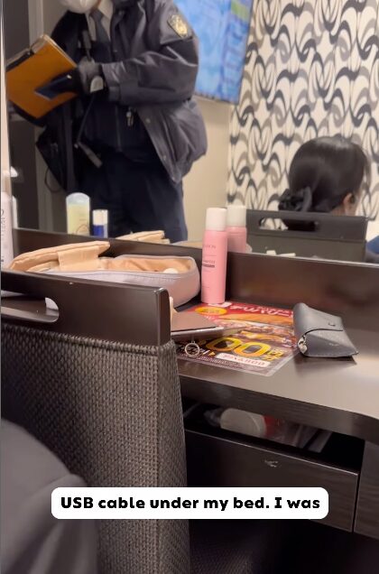 เมื่อแจ้งพนักงานให้เข้ามาตรวจสอบ พร้อมกับตำรวจ ก็พบเพียง พาวเวอร์แบงก์ กับของเล็กๆ น้อยๆ ใต้เตียง แต่ไม่สามารถตามตัวได้ และไม่ทราบว่า มาจากไหน เพราะบริเวณชั้นดังกล่าว ไม่มีกล้องวงจรปิด