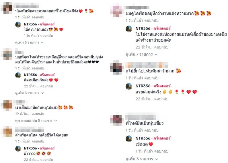 ทำเอาคนแห่คอมเมนต์เขินความหวานมาก และแห่ชมทั้งสวยและหล่อ โดยเฉพาะดาราสาว ทับทิม สวยน่ารักมากๆ อาทิ