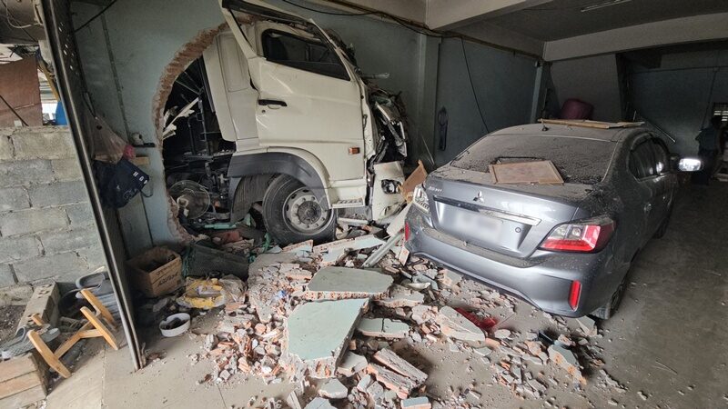 เกือบวินาศ รถชนอาคาร พ่วง 18 ล้อหลับใน หัวรถทะลุไปอีกห้อง ตร.กันเป็นพื้นที่อันตราย