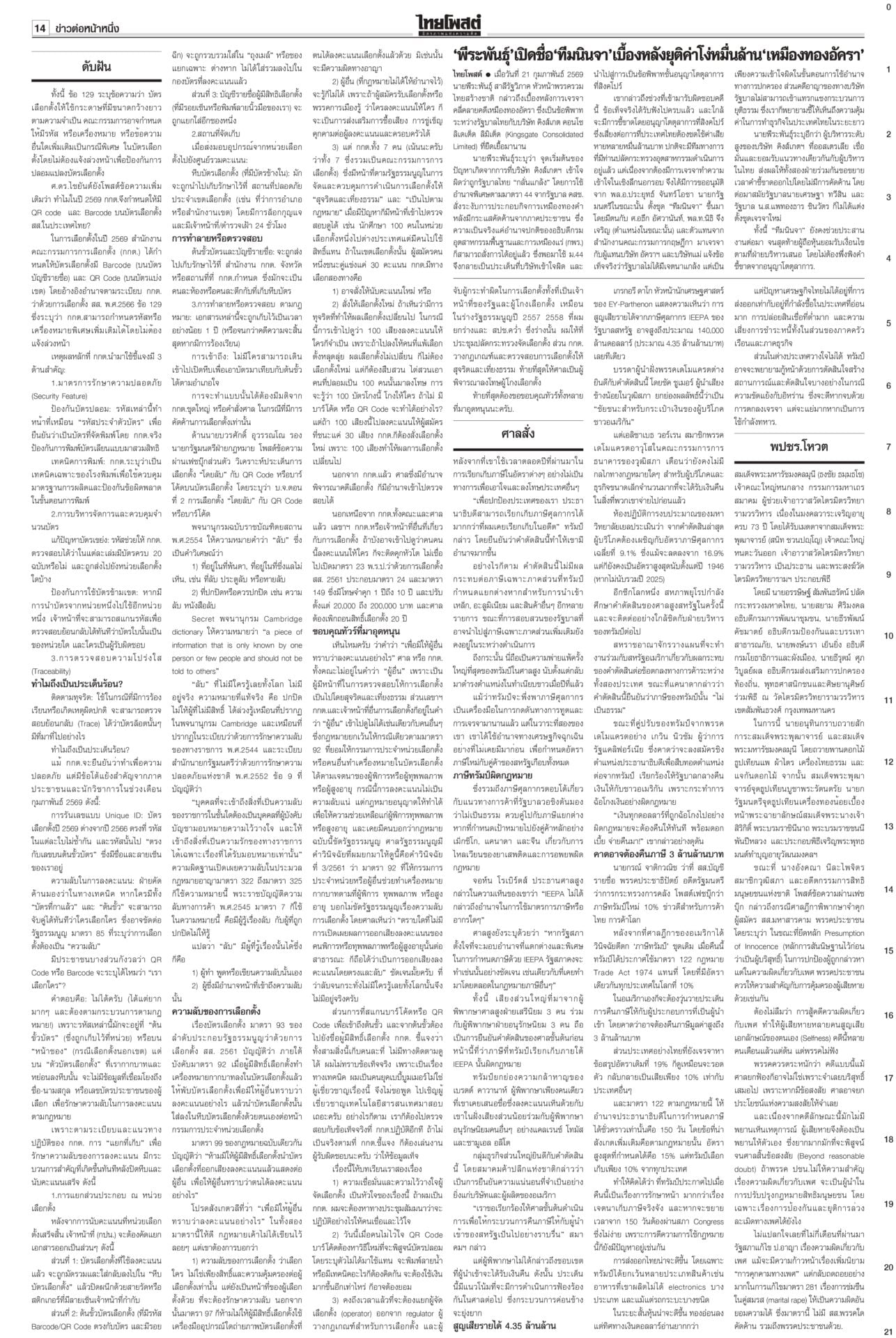 ฉบับวันที่ 22 กุมภาพันธ์ 2569