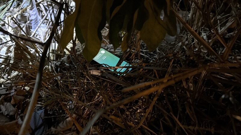 โทรศัพท์มือถือของผู้เสียหายที่คนร้ายนำมาโยนทิ้งไว้