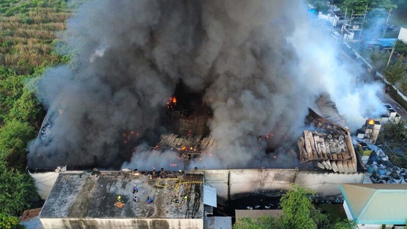 ระทึก ไฟไหม้โรงงานรีไซเคิลยางรถ ควันดำพวยพุ่ง เผาวอดกว่า40ล้าน