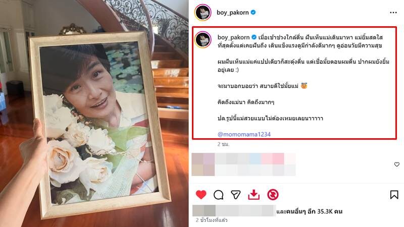 ตื่นมายิ้มกว้าง! บอย ปกรณ์ เล่าความฝัน แม่งามทิพย์ เดินมาหา ยิ้มสดใสที่สุดตั้งแต่เคยฝันถึง ดูแข็งแรงมีความสุข ชาวเน็ตส่งหัวใจรัวๆ