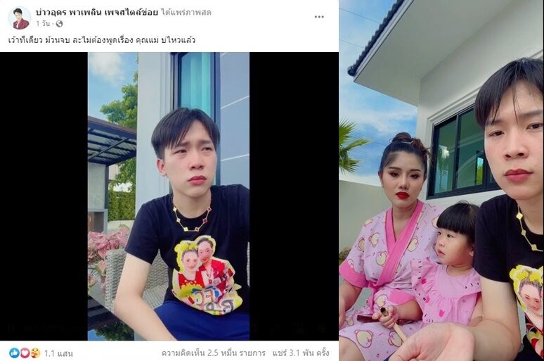 จากกรณีดราม่าหนัก คุณแม่ของผู้ใหญ่บ้านฟินแลนด์ หรือ บิ๊ก ธิติวุฒิ ออกมาพูดต่อว่าถึงลูกชายต่างๆ นานา จนเป็นกระแสวิพากษ์วิจารณ์อย่างหนักอยู่ตอนนี้ ล่าสุด ผู้ใหญ่บ้านฟินแลนด์ สามี แพรวพราว แสงทอง หมอลำดัง ไลฟ์สดร่ำไห้ แคปชั่นว่า “เว้าทีเดียว ม้วนจบ ละไม่ต้องพูดเรื่อง คุณแม่ บ่ไหวแล้ว”